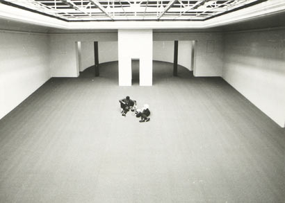 den Raum verfremdendes Ausstellungsniveau geschaffen wurde. Dieses