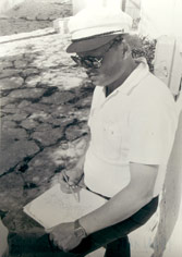 Eugen Gross beim Skizzieren auf einem Segeltörn 1985