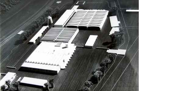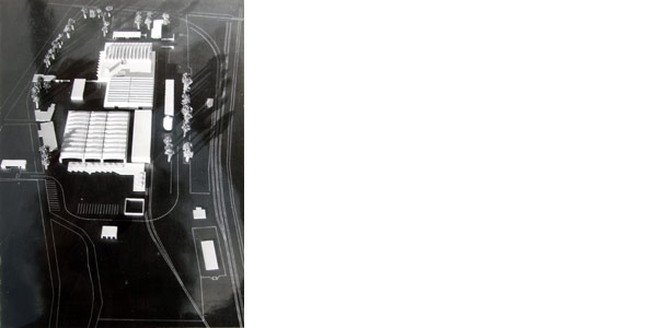 Verwaltungs- und Sozialeinrichtungen anzuschließen. Die maßgeblichen Gesichtspunkte für den Entwurf waren: - Die Erreichung einer konsequenten Trennung zwischen reiner und unreiner Betriebsseite im Produktionsablauf als auch im Freiraumbereich - Trennung von Zubringer- und Expeditverkehr - Die Freihaltung von Erweiterungsflächen im Schlacht- und Kühllagerbereich |