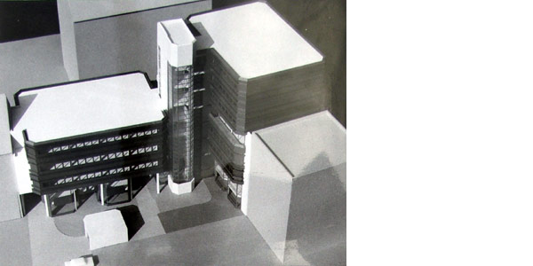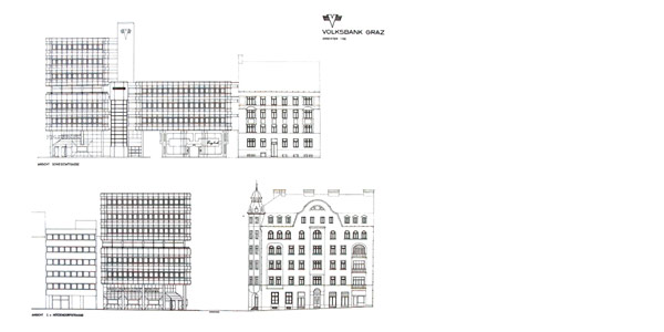 der Stadt Graz nach Süden. Dem architektonischen Entwurf wurden folgende, aus der Aufgabenstellung entwickelte Prinzipien zugrundegelegt: Der Gesamtentwurf sucht dem von der Stadtplanung ausgesprochenen Widmungsrahmen hinsichtlich Bebauungsdichte und bebauter Fläche zu entsprechen. Zugleich werden die drei ausgewiesenen Baustufen in ihrer aufeinanderfolgenden Realisierbarkeit deutlich gemacht und zur wesentlichen architektonischen Gliederung des Baukörpers herangezogen. |
