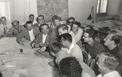 Konrad Wachsmann mit Studenten bei