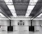 der gekrümmten Rampe an der Längswand, von Oberlichten geführt,